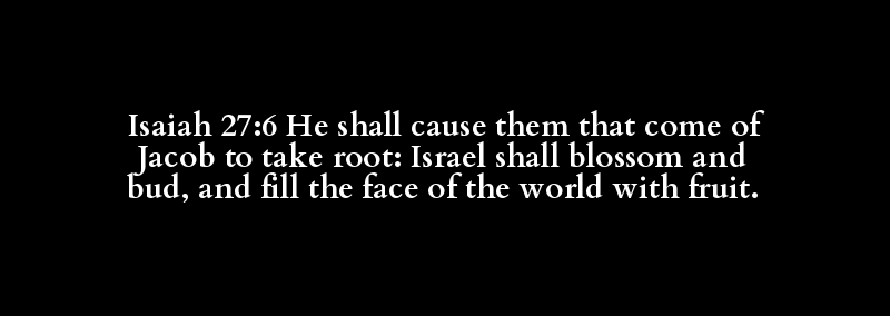 Isaiah 27:6 He shall cause them that come of Jacob to take root: Israel shall blossom and bud, and fill the face of the world with fruit.