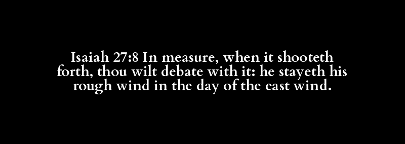 Isaiah 27:8 In measure, when it shooteth forth, thou wilt debate with it: he stayeth his rough wind in the day of the east wind.