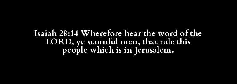 Isaiah 28:14 Wherefore hear the word of the LORD, ye scornful men, that rule this people which is in Jerusalem.