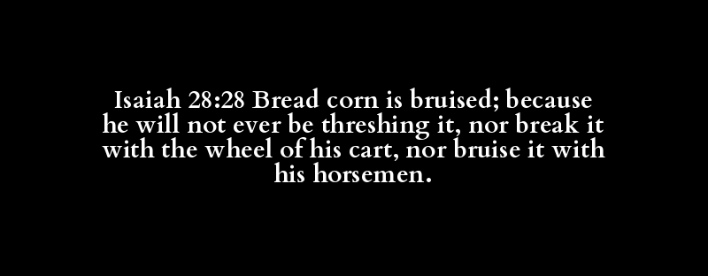 Isaiah 28:28 Bread corn is bruised; because he will not ever be threshing it, nor break it with the wheel of his cart, nor bruise it with his horsemen.