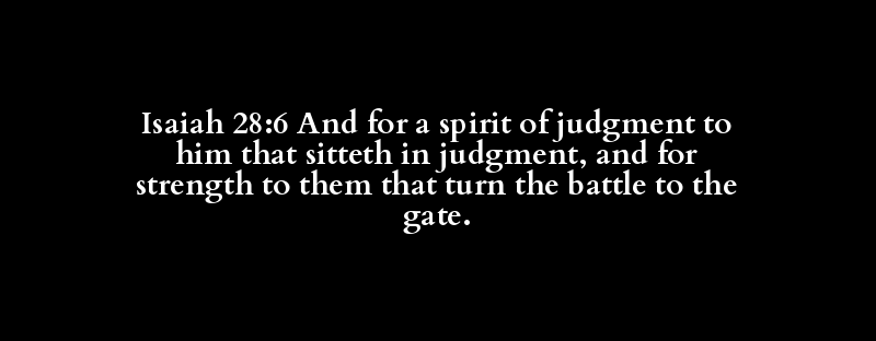 Isaiah 28:6 And for a spirit of judgment to him that sitteth in judgment, and for strength to them that turn the battle to the gate.