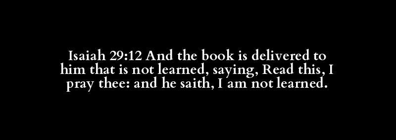 Isaiah 29:12 And the book is delivered to him that is not learned, saying, Read this, I pray thee: and he saith, I am not learned.