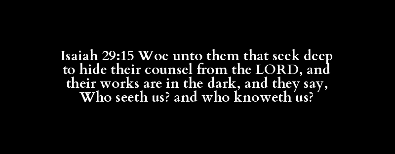 Isaiah 29:15 Woe unto them that seek deep to hide their counsel from the LORD, and their works are in the dark, and they say, Who seeth us? and who knoweth us?