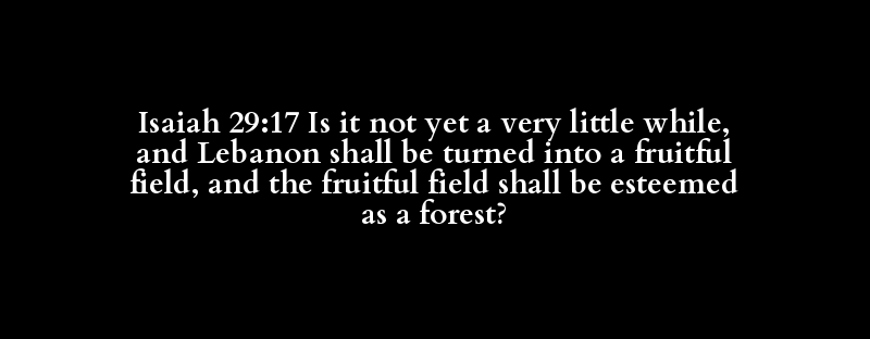Isaiah 29:17 Is it not yet a very little while, and Lebanon shall be turned into a fruitful field, and the fruitful field shall be esteemed as a forest?
