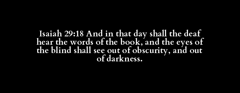 Isaiah 29:18 And in that day shall the deaf hear the words of the book, and the eyes of the blind shall see out of obscurity, and out of darkness.