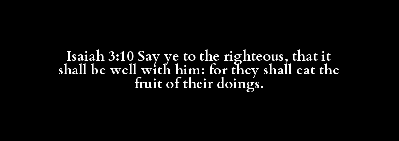 Isaiah 3:10 Say ye to the righteous, that it shall be well with him: for they shall eat the fruit of their doings.