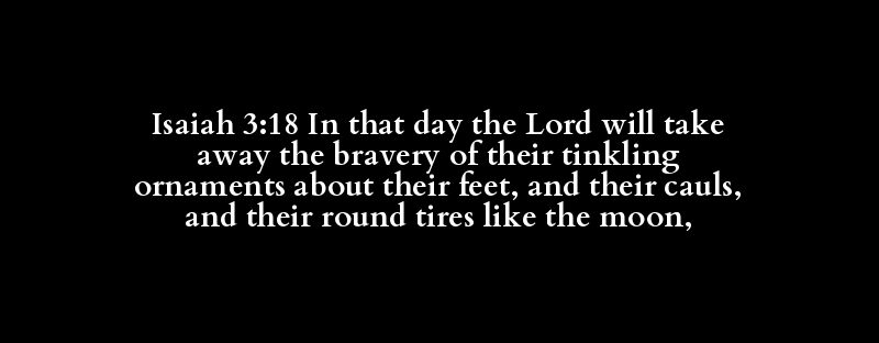 Isaiah 3:18 In that day the Lord will take away the bravery of their tinkling ornaments about their feet, and their cauls, and their round tires like the moon,