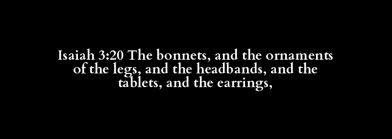 Isaiah 3:20 The bonnets, and the ornaments of the legs, and the headbands, and the tablets, and the earrings,