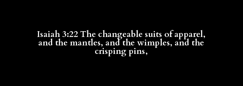 Isaiah 3:22 The changeable suits of apparel, and the mantles, and the wimples, and the crisping pins,