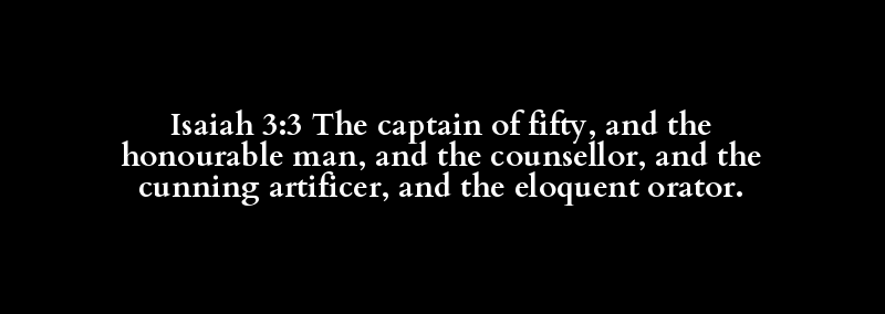 Isaiah 3:3 The captain of fifty, and the honourable man, and the counsellor, and the cunning artificer, and the eloquent orator.
