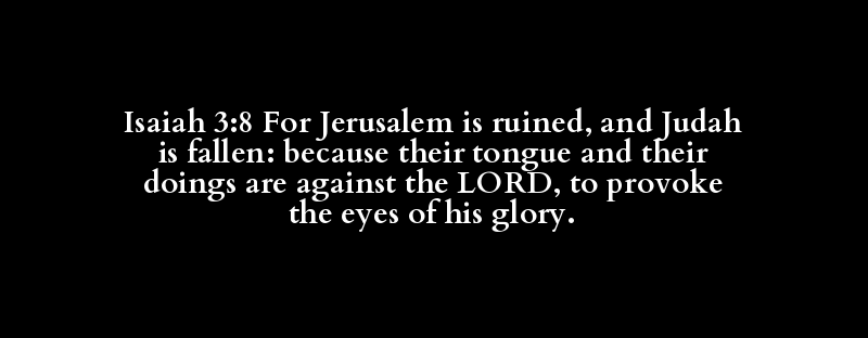 Isaiah 3:8 For Jerusalem is ruined, and Judah is fallen: because their tongue and their doings are against the LORD, to provoke the eyes of his glory.