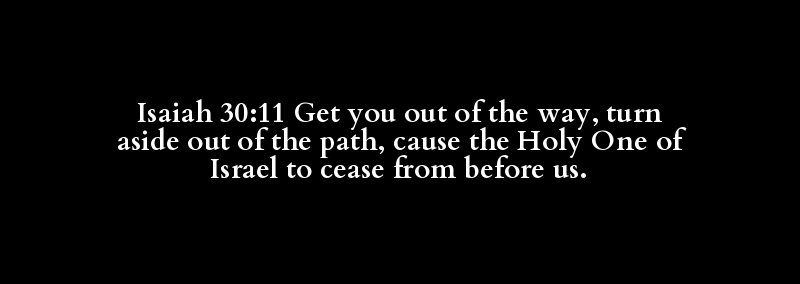 Isaiah 30:11 Get you out of the way, turn aside out of the path, cause the Holy One of Israel to cease from before us.