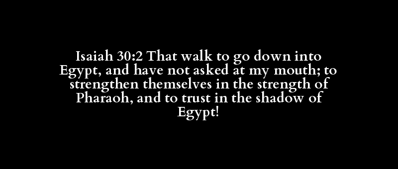 Isaiah 30:2 That walk to go down into Egypt, and have not asked at my mouth; to strengthen themselves in the strength of Pharaoh, and to trust in the shadow of Egypt!
