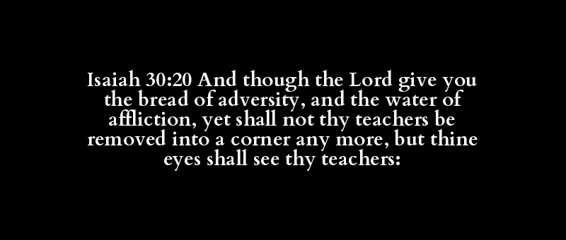 Isaiah 30:20 And though the Lord give you the bread of adversity, and the water of affliction, yet shall not thy teachers be removed into a corner any more, but thine eyes shall see thy teachers: