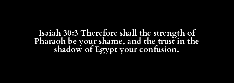 Isaiah 30:3 Therefore shall the strength of Pharaoh be your shame, and the trust in the shadow of Egypt your confusion.