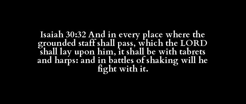 Isaiah 30:32 And in every place where the grounded staff shall pass, which the LORD shall lay upon him, it shall be with tabrets and harps: and in battles of shaking will he fight with it.