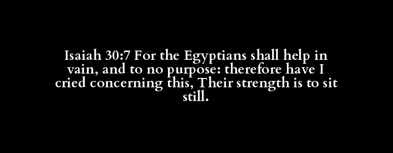 Isaiah 30:7 For the Egyptians shall help in vain, and to no purpose: therefore have I cried concerning this, Their strength is to sit still.