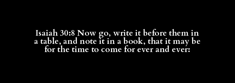 Isaiah 30:8 Now go, write it before them in a table, and note it in a book, that it may be for the time to come for ever and ever: