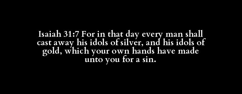 Isaiah 31:7 For in that day every man shall cast away his idols of silver, and his idols of gold, which your own hands have made unto you for a sin.