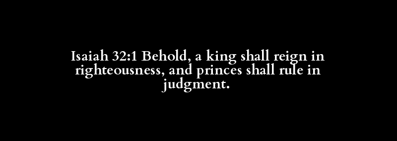 Isaiah 32:1 Behold, a king shall reign in righteousness, and princes shall rule in judgment.