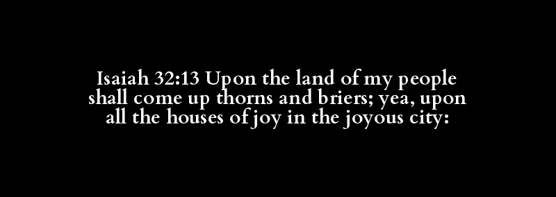 Isaiah 32:13 Upon the land of my people shall come up thorns and briers; yea, upon all the houses of joy in the joyous city: