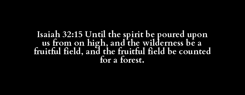 Isaiah 32:15 Until the spirit be poured upon us from on high, and the wilderness be a fruitful field, and the fruitful field be counted for a forest.