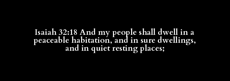 Isaiah 32:18 And my people shall dwell in a peaceable habitation, and in sure dwellings, and in quiet resting places;