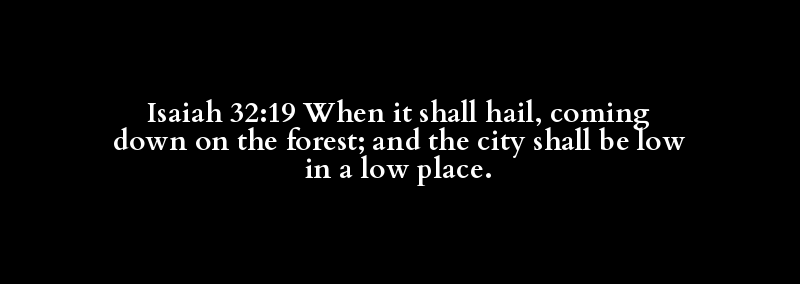 Isaiah 32:19 When it shall hail, coming down on the forest; and the city shall be low in a low place.