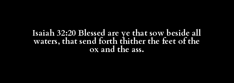 Isaiah 32:20 Blessed are ye that sow beside all waters, that send forth thither the feet of the ox and the ass.