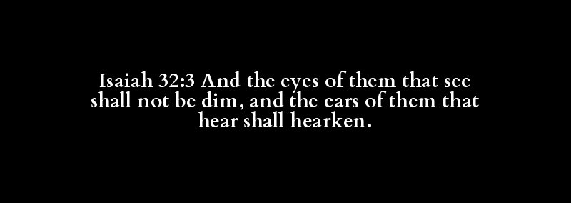 Isaiah 32:3 And the eyes of them that see shall not be dim, and the ears of them that hear shall hearken.