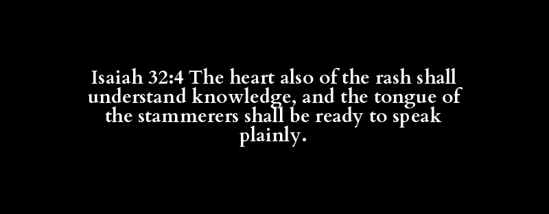 Isaiah 32:4 The heart also of the rash shall understand knowledge, and the tongue of the stammerers shall be ready to speak plainly.