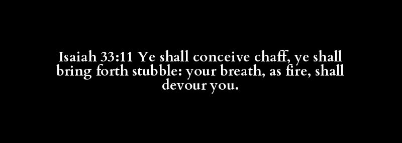Isaiah 33:11 Ye shall conceive chaff, ye shall bring forth stubble: your breath, as fire, shall devour you.