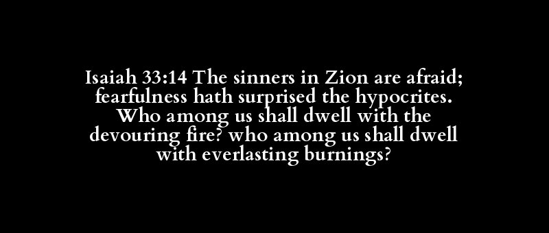 Isaiah 33:14 The sinners in Zion are afraid; fearfulness hath surprised the hypocrites. Who among us shall dwell with the devouring fire? who among us shall dwell with everlasting burnings?