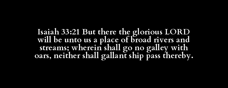 Isaiah 33:21 But there the glorious LORD will be unto us a place of broad rivers and streams; wherein shall go no galley with oars, neither shall gallant ship pass thereby.