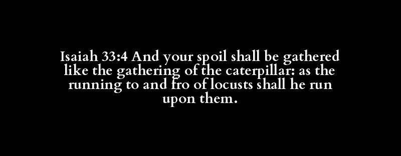 Isaiah 33:4 And your spoil shall be gathered like the gathering of the caterpillar: as the running to and fro of locusts shall he run upon them.