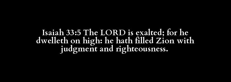 Isaiah 33:5 The LORD is exalted; for he dwelleth on high: he hath filled Zion with judgment and righteousness.