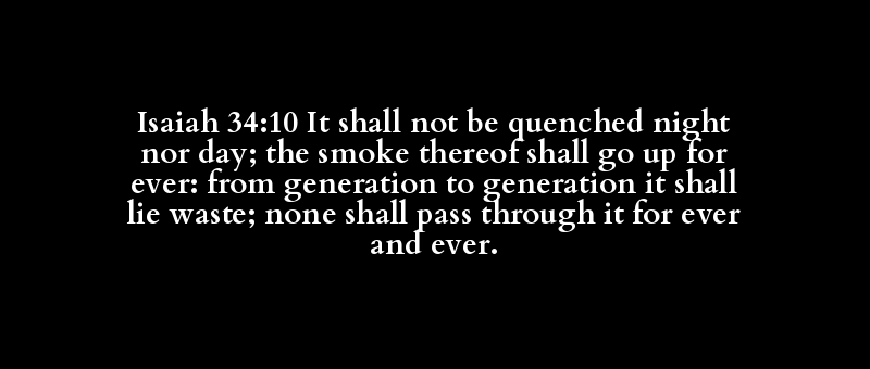 Isaiah 34:10 It shall not be quenched night nor day; the smoke thereof shall go up for ever: from generation to generation it shall lie waste; none shall pass through it for ever and ever.