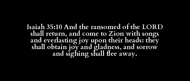 Isaiah 35:10 And the ransomed of the LORD shall return, and come to Zion with songs and everlasting joy upon their heads: they shall obtain joy and gladness, and sorrow and sighing shall flee away.