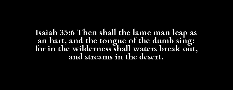 Isaiah 35:6 Then shall the lame man leap as an hart, and the tongue of the dumb sing: for in the wilderness shall waters break out, and streams in the desert.