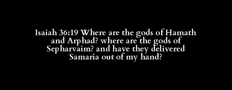 Isaiah 36:19 Where are the gods of Hamath and Arphad? where are the gods of Sepharvaim? and have they delivered Samaria out of my hand?