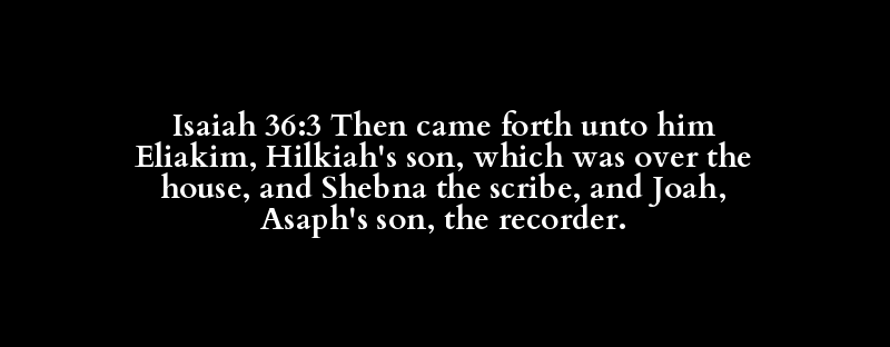 Isaiah 36:3 Then came forth unto him Eliakim, Hilkiah's son, which was over the house, and Shebna the scribe, and Joah, Asaph's son, the recorder.