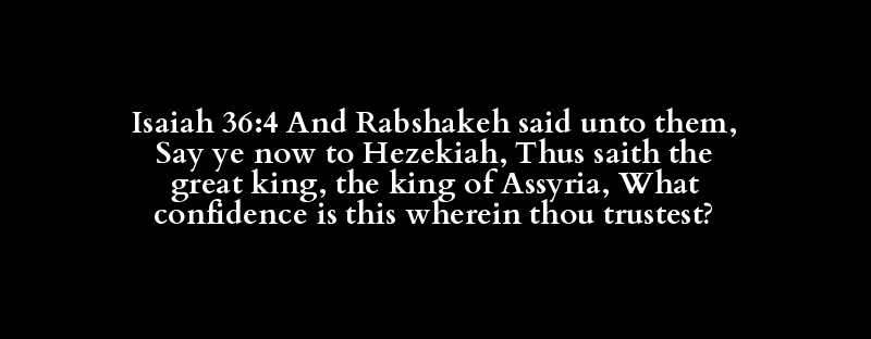 Isaiah 36:4 And Rabshakeh said unto them, Say ye now to Hezekiah, Thus saith the great king, the king of Assyria, What confidence is this wherein thou trustest?