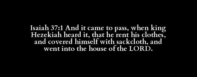 Isaiah 37:1 And it came to pass, when king Hezekiah heard it, that he rent his clothes, and covered himself with sackcloth, and went into the house of the LORD.
