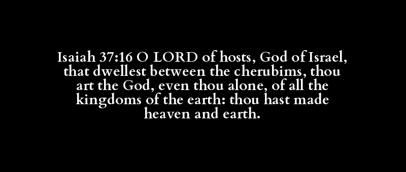 Isaiah 37:16 O LORD of hosts, God of Israel, that dwellest between the cherubims, thou art the God, even thou alone, of all the kingdoms of the earth: thou hast made heaven and earth.