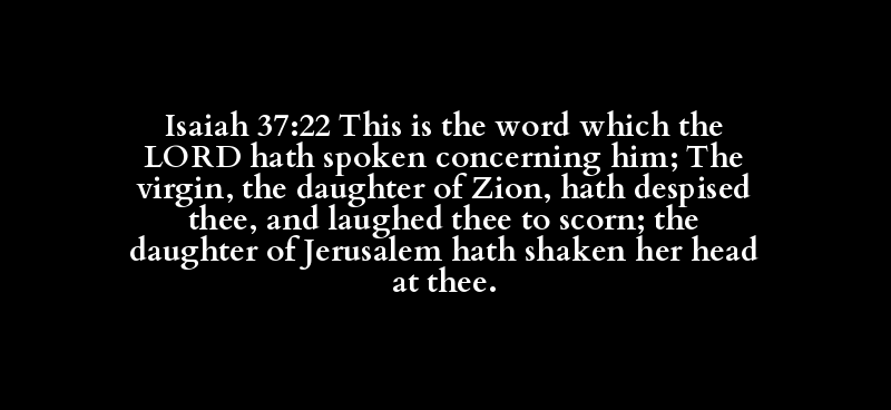 Isaiah 37:22 This is the word which the LORD hath spoken concerning him; The virgin, the daughter of Zion, hath despised thee, and laughed thee to scorn; the daughter of Jerusalem hath shaken her head at thee.