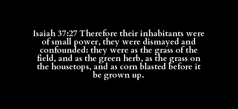 Isaiah 37:27 Therefore their inhabitants were of small power, they were dismayed and confounded: they were as the grass of the field, and as the green herb, as the grass on the housetops, and as corn blasted before it be grown up.