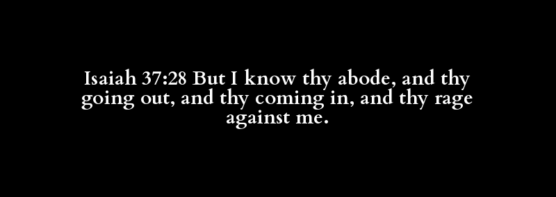 Isaiah 37:28 But I know thy abode, and thy going out, and thy coming in, and thy rage against me.