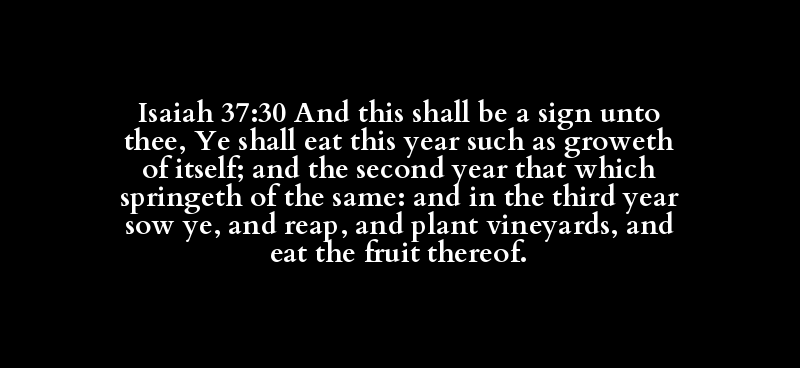 | אוֹת | אָכַל | שָׁנֶה | סָפִיחַ | שֵׁנִי | שָׁנֶה | שָׁחִיס | שְׁלִישִׁי | שָׁנֶה | זָרַע | קָצַר | נָטַע | כֶּרֶם | אָכַל | פְּרִי |