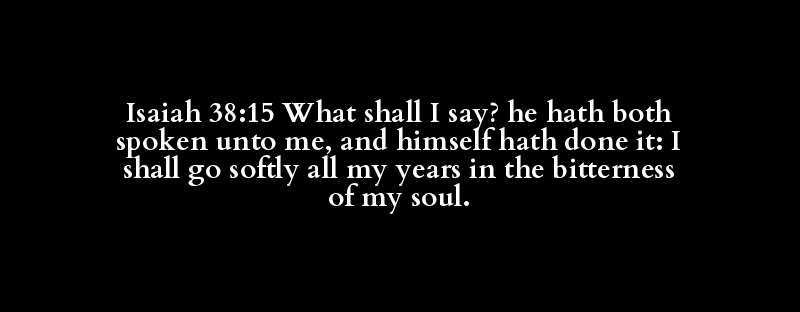 Isaiah 38:15 What shall I say? he hath both spoken unto me, and himself hath done it: I shall go softly all my years in the bitterness of my soul.