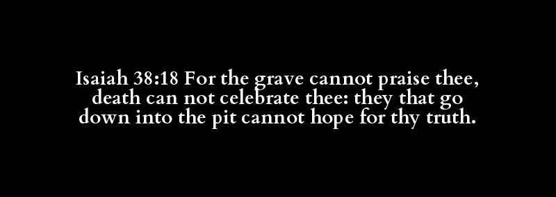 Isaiah 38:18 For the grave cannot praise thee, death can not celebrate thee: they that go down into the pit cannot hope for thy truth.